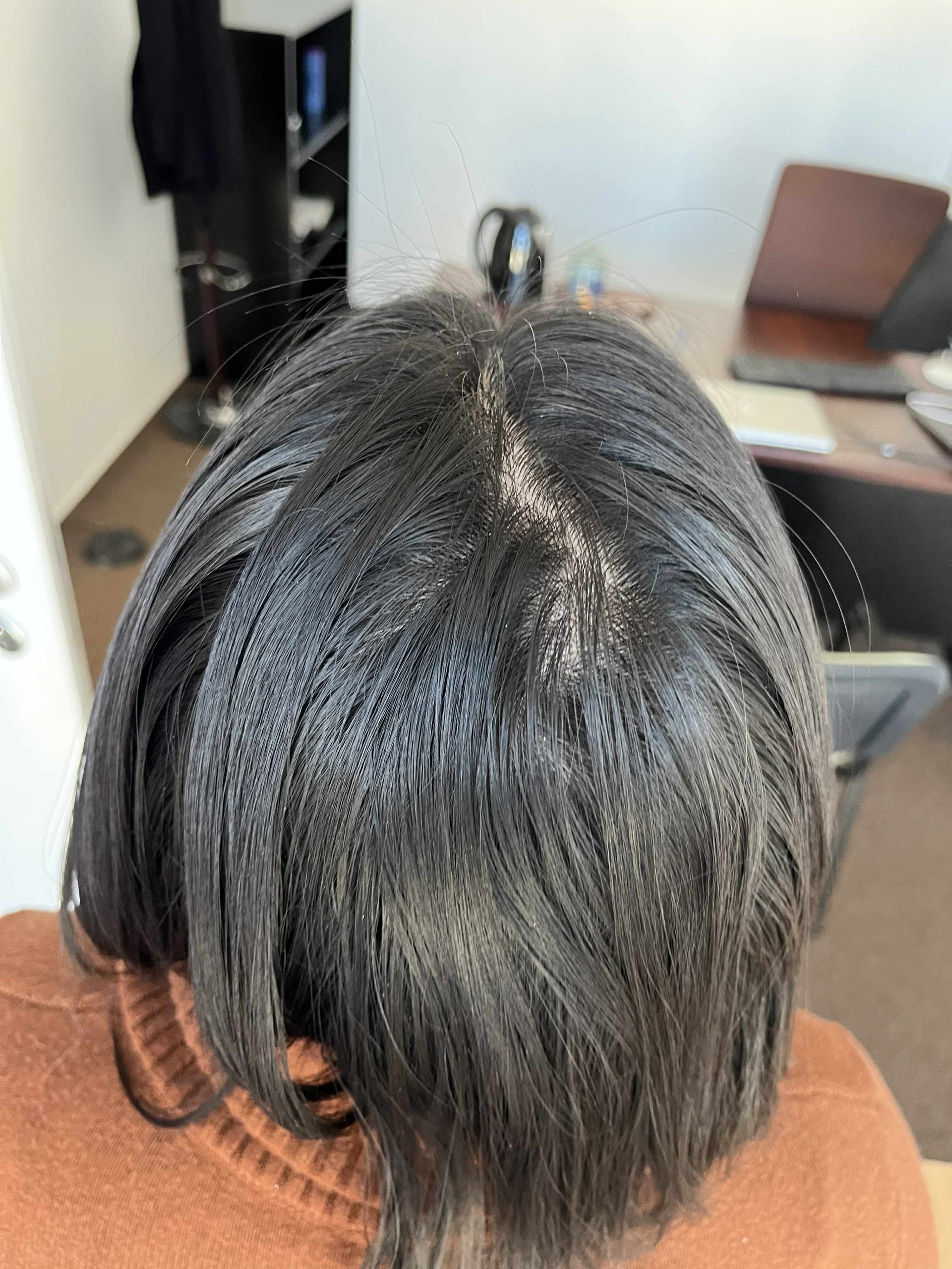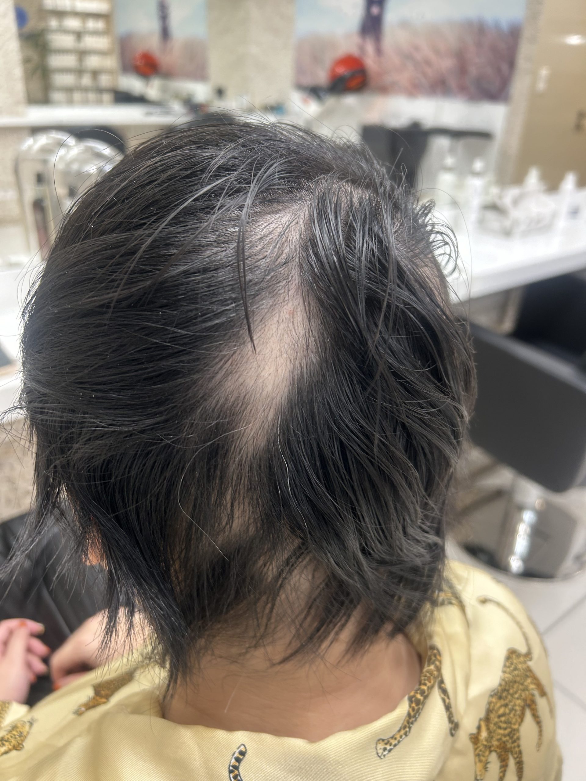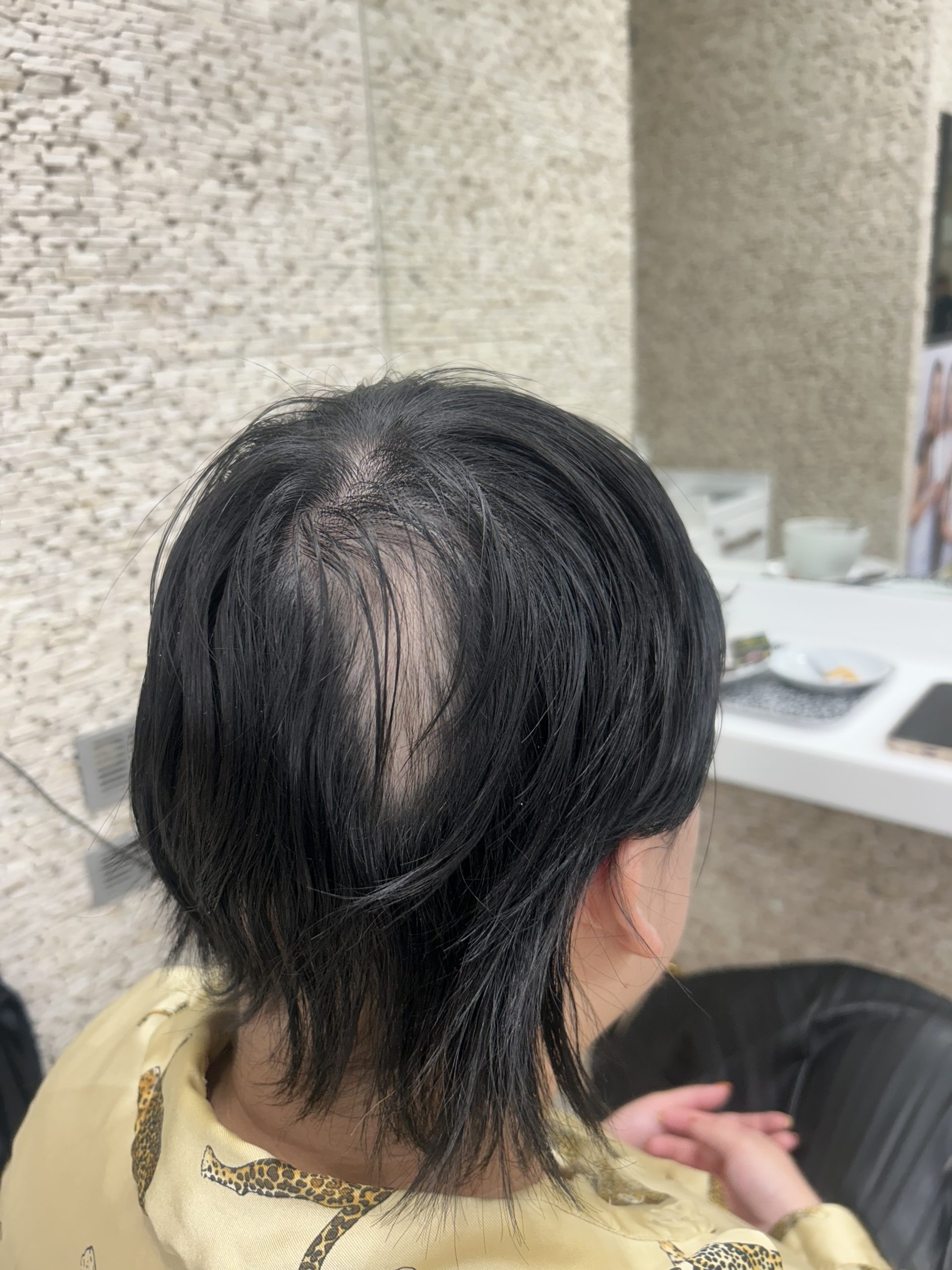 My hair began thinning continuously in 2018, which peaked in 2020. By then I had large bald patches, so I shaved my head, and in November 2020 I started wearing a wig. While wearing the wig, I continuously treated myself with various hair tonics and acupuncture, and I kept shaving my hair regularly.