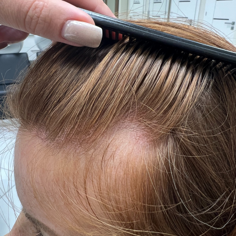 That’s when I turned to the salon in Újbuda. My trichologist, Zsüli Horváth, with her expertise and kind personality, convinced me from the very first visit that I was in good hands. As the treatments progressed, the increasing number of new hairs growing back confirmed this. I continued visiting her throughout my pregnancy and even afterward, which helped me manage the natural, stronger postpartum hair shedding as well.